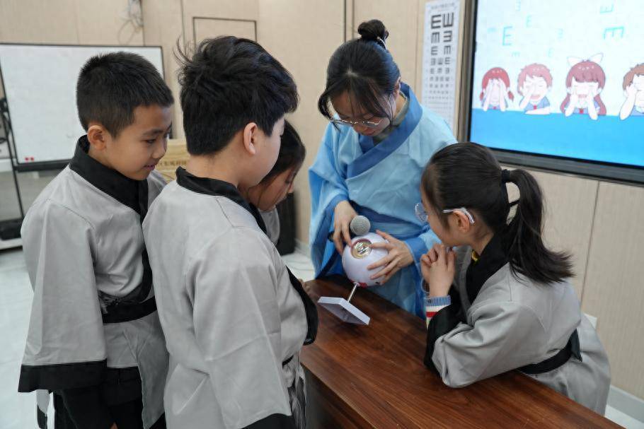“我知道这个是枸杞”“这个是菊花”“这个罐子里的是什么呀”……在活动现场,记者看到小朋友们对一些中药材充满好奇,“我们准备了一些与明目相关的中药材,如荷叶、菊花、决明子等,让小朋友们认识了解。”讲师唐嘉敏介绍。