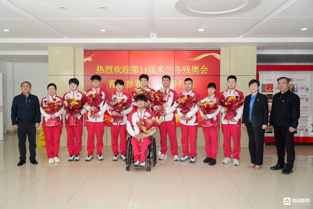 r3月19日下午,由青岛市承训的中国残奥冰球队,在斩获2026年意大利米兰冬残奥会冰球项目铜牌后载誉回青。当天在青岛市残联办公楼前,当运动员们从大巴车上缓缓走出,青岛市残联党组书记、理事长张艳立马迎上前,和运动员们挨个握手,并送上诚挚的祝贺。随后工作人员递上鲜花,为他们接风。在看到大家脖子上挂着沉甸甸的奖牌时,张艳欣慰地说:“这枚铜牌不亚于金牌!”